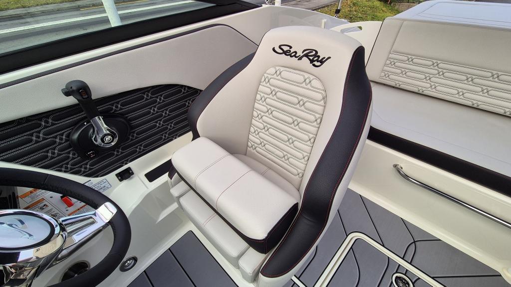 Cockpitpolsterung: STONE, Bodenbelag: GRAU, R Package: SPXR-spezial Naht, SLX-Premium Lenkrad, Kissen mit SPX-R Logos und Stickerei, Schale 3-Ton, Captain’s Package: Bimini Sonnendach, Bug- & Cockpitdecke, Füllkissen Bug, Cockpittisch Teak rund, Fender Clips, Gebogene / runde Windschutzscheibe, Cockpitbodenbelag SeaDek geklebt, Cockpitbeleuchtung LED (blau) Selbstlenzendes Cockpit STD, Stereoanlage Premium FUSION mit Subwoofer, Batteriewahlschalter mit Zusatzbatterie, Echolot STD, SIMRAD Digital Dash NSX Ultra Wide 12’’, Seekarte C-Map, Luftpumpe für Wasserspielzeug, Heckdusche, Unterwasserplattform manuell absenkbar, Badeplattformbelag mit SeaDek, Autom. Feuerlöschanlage im Motorraum, Handfeuerlöscher 2kg